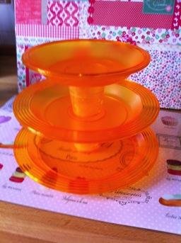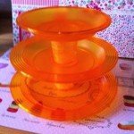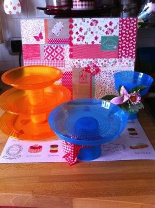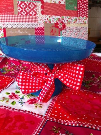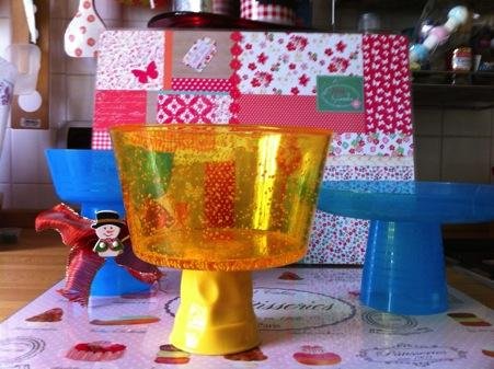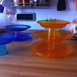 Le alzatine in foto sono state assemblate utilizzando tre piatti di diverse misure, di plastica dura, incollati, con la colla a caldo, l’uno sull’altro con dei bicchieri sempre di plastica dura.