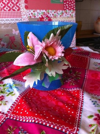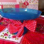 Altre alzatine le ho create utilizzando piattini, bicchieri e ciotole, poi abbellite con fiocchetti e fiori vari, provenienti sempre da vecchi pacchi o bomboniere!