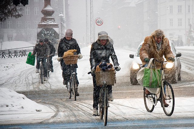 La prova che si possa utilizzare la bici anche in presenza di condizioni meteorologiche avverse la forniscono i paesi del Nord Europa in cui la percentuale di ciclisti urbani non cala durante l’inverno nemmeno con la neve. Esistono infatti gomme da neve per la bicicletta che in Italia non vengono commercializzate, ma che in Norvegia sono regalate dalle amministrazioni locali.