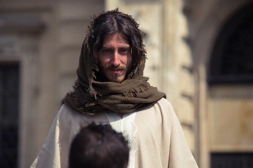 Si fa chiamare Jesus in Turin, è un Cristo molto mediatico ed è come tutti se lo immaginano, molto cinematografico, fisicamente simile a quello messo in scena da Franco Zeffirelli. Interpreta bene il suo ruolo, è buono e accoglie i pellegrini a braccia aperte regalando loro un abbraccio e facendo anche un po’ di crowdfunding. Proprio oggi come allora nonostante i suoi buoni propositi, fin dalle sue prime apparizioni non è stato capito. È stato fermato, portato in Questura e schedato dalle forze dell’ordine.