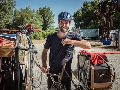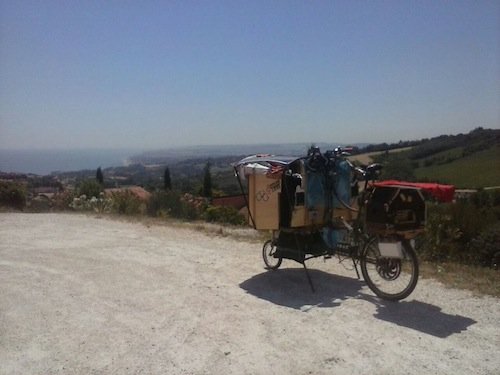 Al terzo giorno di viaggio mi si è rotta la bicicletta. Nel disperato tentativo di aggiustarla la carrozzeria a cui mi sono rivolto ha fermato la produzione per aiutarmi. Quindi anche gli avvenimenti negativi portano sempre alla positivà. Le persone che incontro mi aiutano e sono solidali con me, ma soprattutto con il progetto che porto avanti.
