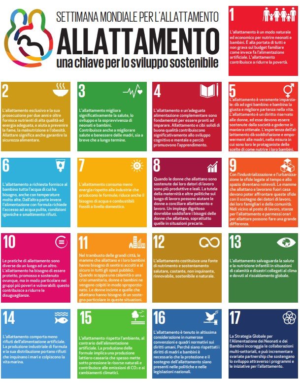 L’oggetto della World Breastfeeding Week rientra nell’ambito della prima area tematica degli obiettivi di sviluppo sostenibile 2030.